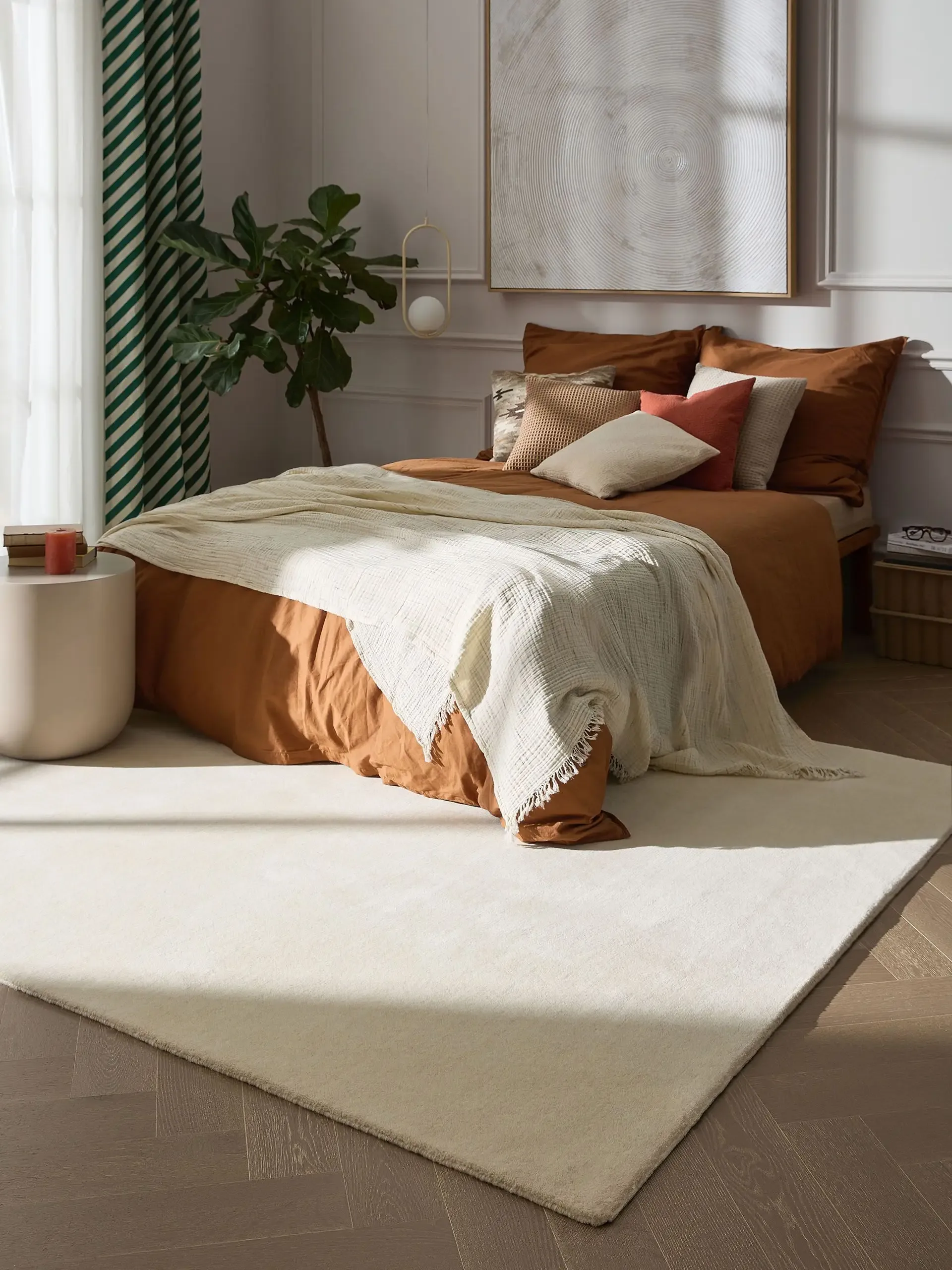 "Um tapete da benuta não apenas mantém os seus pés quentes, mas também completa a sua decoração, assim como os sapatos completam um look. Pode ser um elemento discreto no fundo ou destacar-se como um ponto forte no espaço."
